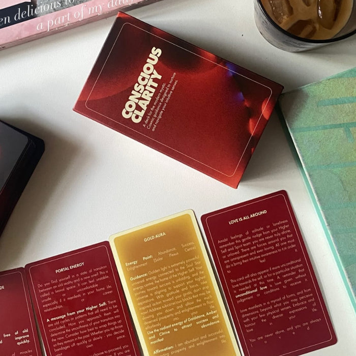 These cards were designed to meet you exactly where you are with language that’s clear, intuitive, and direct. Conscious Clarity invites you to turn inward and more easily access the answers already stirring within. Each card aims to deepen connection with the energies around you, working as a mirror for your own wisdom, and a gentle call back to your inner knowing.