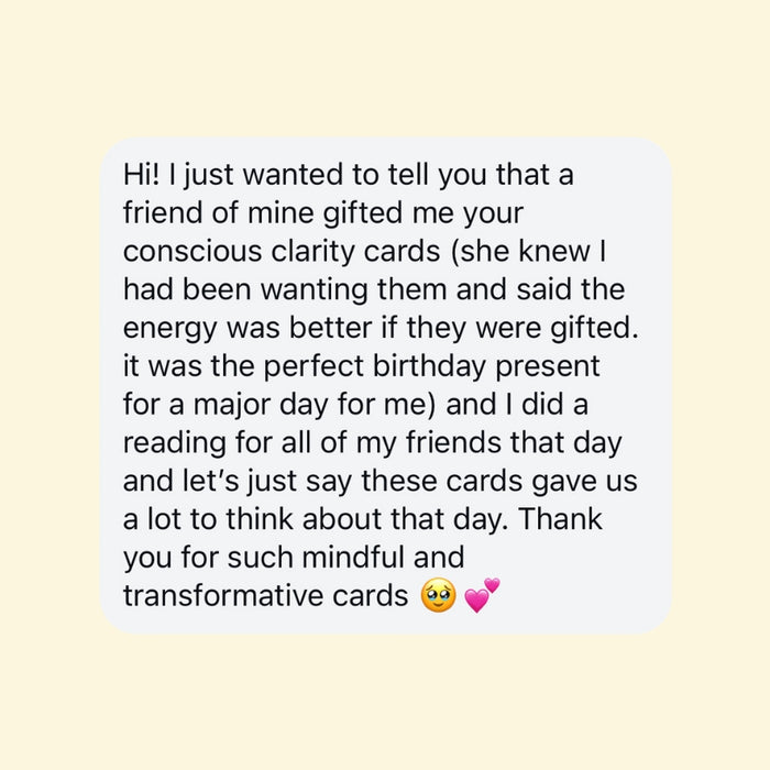 Conscious Clarity was created from a desire to access something more immediate, more grounded and more you. Traditional divination systems are rich in symbolism and layered meaning, but that depth can sometimes feel overwhelming or out of reach, especially in the moments we crave clarity most.